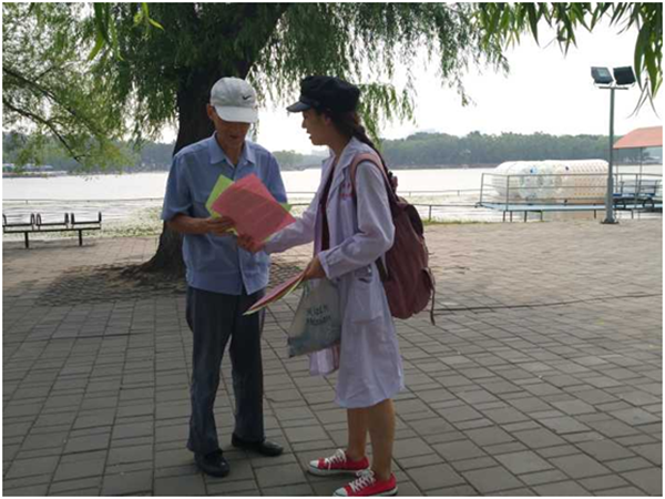 此外,党支部还将两会主要精神内容印制传单,向公园中的群众免费发放,让更多的百姓也加入到关心国家大事,了解国家时政的队伍中来。老爷爷老奶奶们与同学们亲切交流,讲述几十年来国家的重大政策使老百姓的生活发生了翻天覆地的变化,同学们通过与老人们的接触,更加体会到国家时政并不是空话假话,而有着非常重要的现实意义。