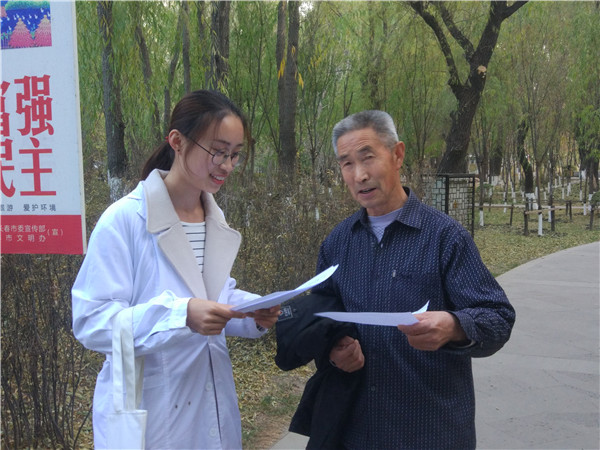 2015级和2016级本科生党支部在朝阳公园开展了“宣传普及冬季流感预防知识”的党员志愿活动。