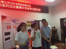 二)第一届放射医学系实验趣味运动会。6月19日13时,在202放射生物会议室和篮球场举办“头脑转一转,身体动一动”实验趣味运动会,包括插枪头、药品称量、看图识物、浓度投篮、跳绳问答、愚公移水和沙包掷准等项目,开展相关的实验结合运动的活动,从实验室中发掘运动的乐趣,同时将锻炼身体融入到科研中,结合共同话题来促进放射医学专业与其它专业之间的交流和合作。