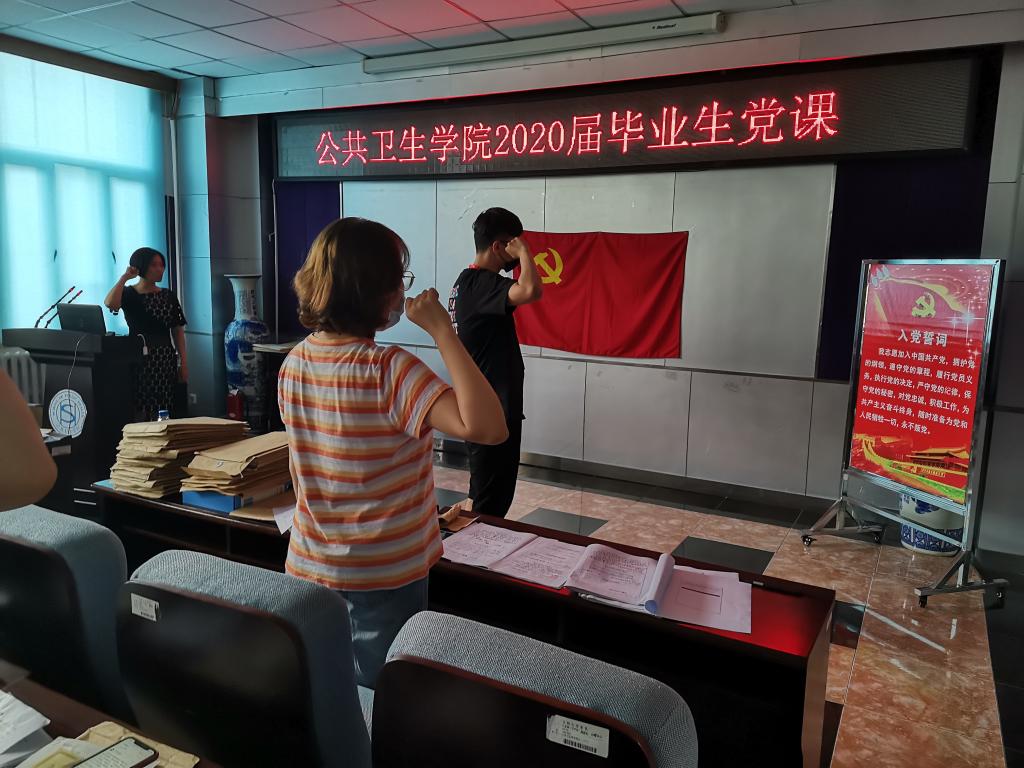 紧接着,刘丽书记以“恪守党员初心,勇担时代使命”为主题给毕业生党员讲授最后一堂党课。首先,刘丽书记解读了习近平总书记在战“疫”期间的重要讲话和指示精神:是党中央带领14亿中国人民群众,经过艰苦卓绝的努力,在疫情防控阻击战上取得重大战略成果的经验和总结。同时,这场战“疫”, 不仅是党践行初心和使命的生动写照,让人民更好地看到了党组织是如何在实践中成长,为维护地区和世界公共卫生安全上做出了重要贡献,书写出经得起历史检验、备受世界瞩目的“中国答卷”。随后,刘丽书记介绍了包你发