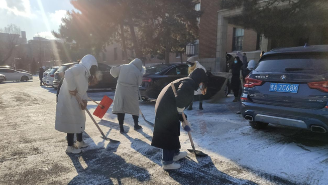 研究生党支部集体行动,由教师党员带领,研究生党员、入党积极分子等先锋队以雪为令,充分发挥共产党员的先锋模范作用,开展校园扫雪除冰活动。