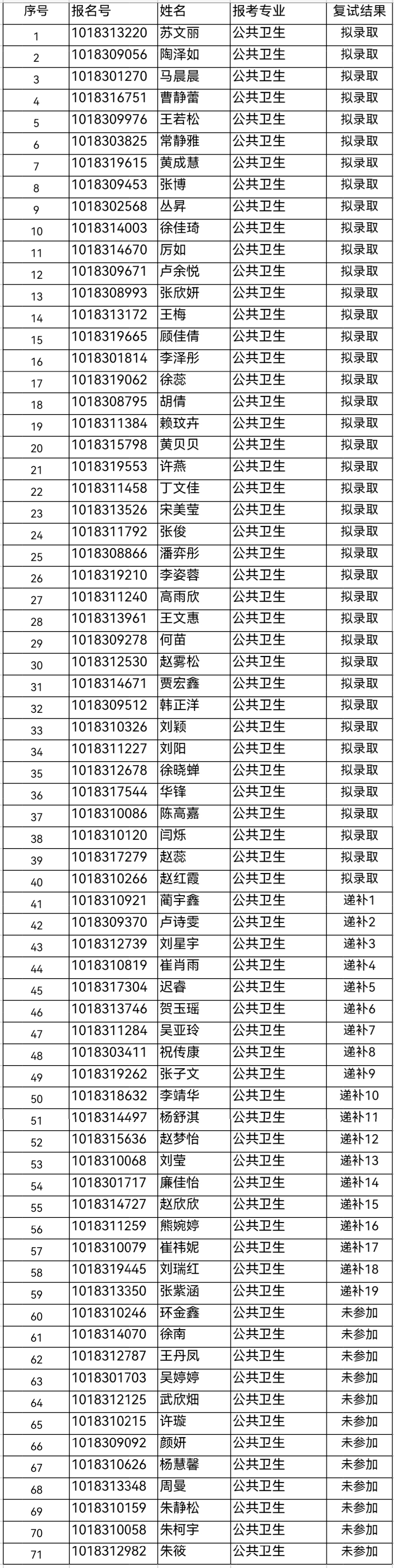 按照《包你发 2026年接收推荐免试攻读研究生复试、录取工作办法》,经过包你发 专家组审查和考核,按照复试考核成绩由高到低依次录取确定拟录取名单。现将拟录取名单予以公示。如有异议,请向包你发 反映。咨询电话:0431-85619445