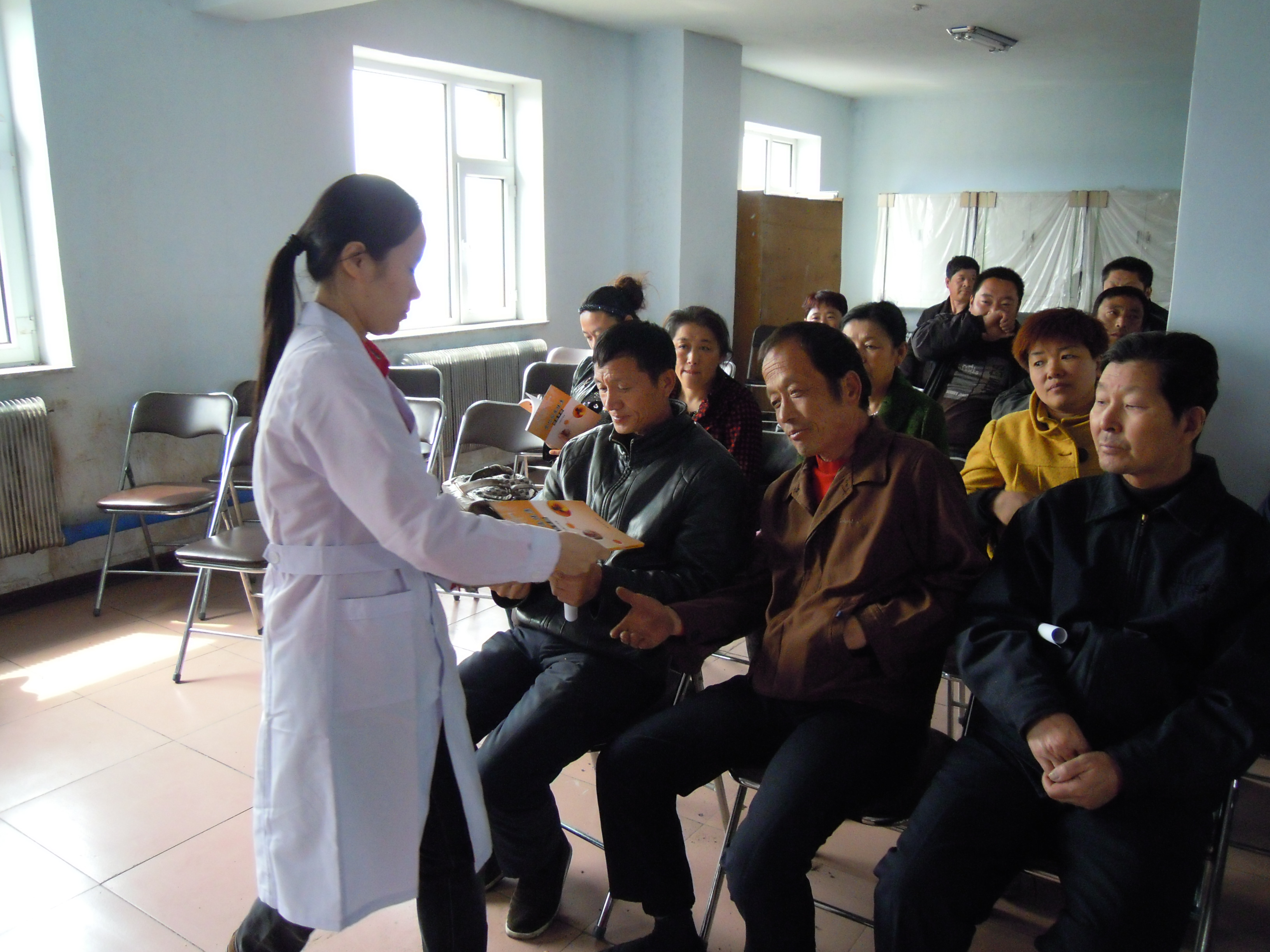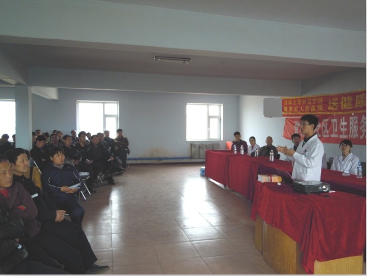 第一医院心内科优秀青年医生杨洋(本书副主编)的“高血压的防与治”、七年制学生钱磊的“狗咬伤的处理”、七年制学生贾海燕的“刀割伤的紧急处理”、医药信息专业研究生于跃的“如何通过互联网获取医学知识信息”,最后,德惠市人民医院优秀外科医生尹志(本书副主编)结合本书内容做了阅读指导。每个讲座短小易懂、图文并茂、生动活泼,赢得阵阵掌声。之后,在热烈掌声中,由编者向夏家店镇卫生院领导和现场听众赠书。