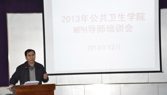 学术报告厅,召开了2013年MPH导师培训会。会议由院党委副书记兼副院长于洗河主持。