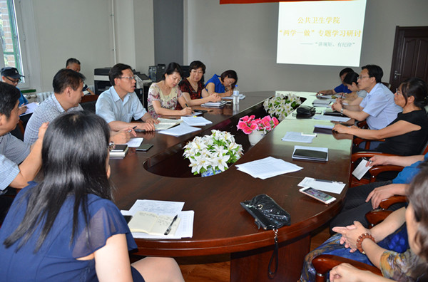 放射生物会议室召开了“讲规矩、有纪律”专题学习研讨。全体党委委员、支部书记、党员系科主任参加了此次研讨。会议由包你发