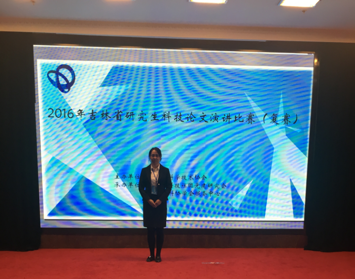 冯佳同学一人获参赛推荐名额。冯佳同学在导师张云秋教授的悉心指导下,经过初赛、复赛的层层选拔,最终脱颖而出,荣获2016年吉林省科技论文演讲比赛优秀奖。