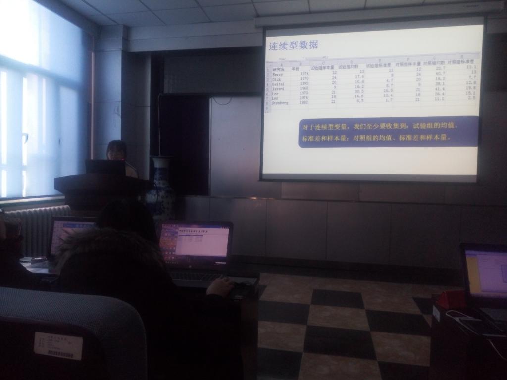 三楼报告厅由流行病与卫生统计学专业张扬雨同学为大家做了题为《二分类数据及连续性数据Meta分析的软件实现》的报告,详细介绍了不同类型的数据资料如何做Meta分析,充分将Meta分析的理论应用到了实践中。张扬雨同学带领大家实际操作,增加了大家的实战经验。