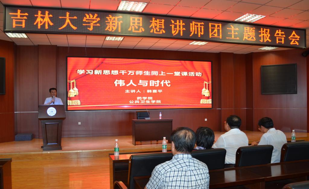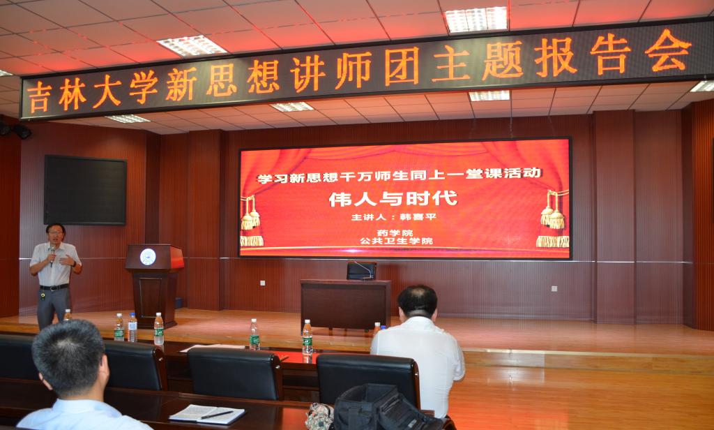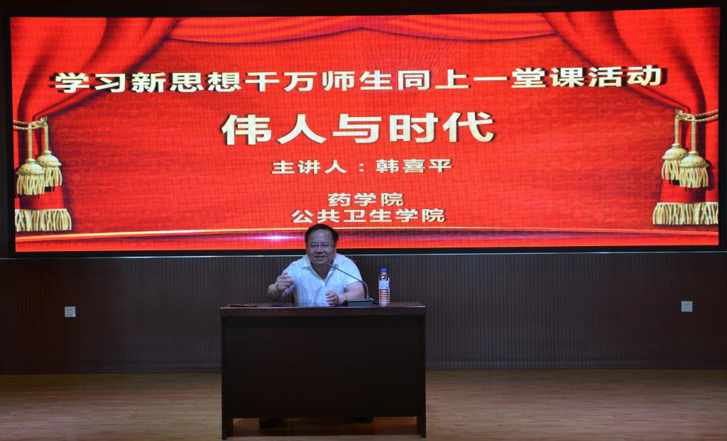新思想讲师团”韩喜平教授在新民校区一教401室为两院全体教职工做了主题为《伟人与时代》的报告。会议由包你发