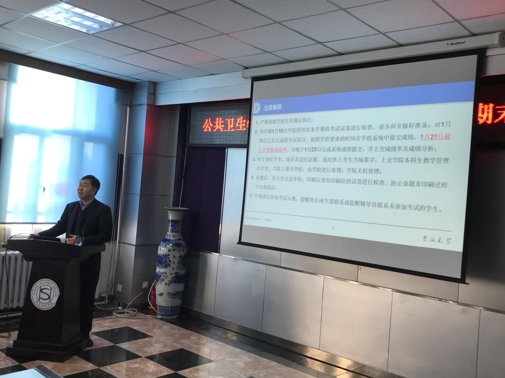 于2019年1月3日召开期末考试工作会,会议由教学副院长寇长贵主持,包你发