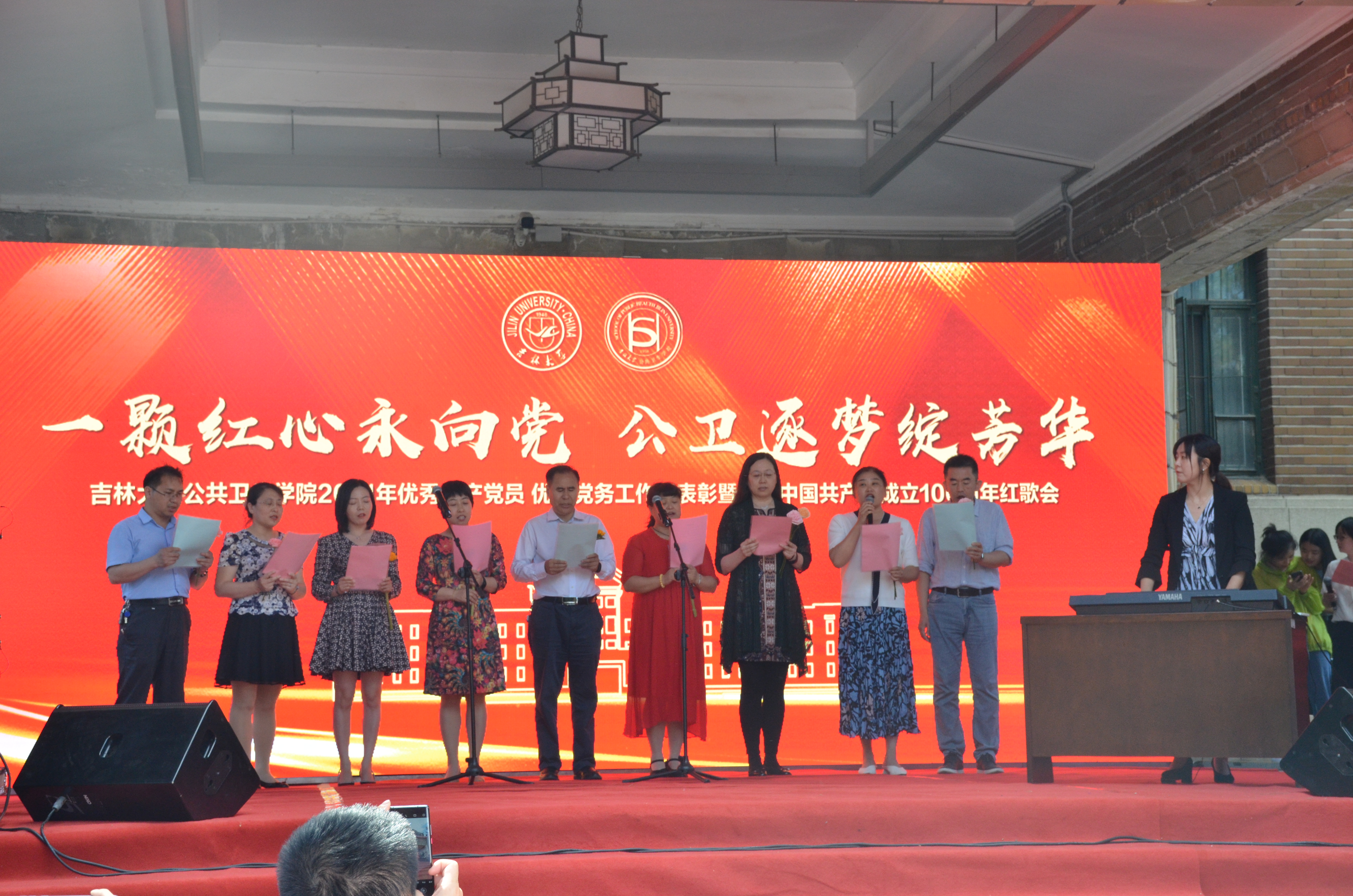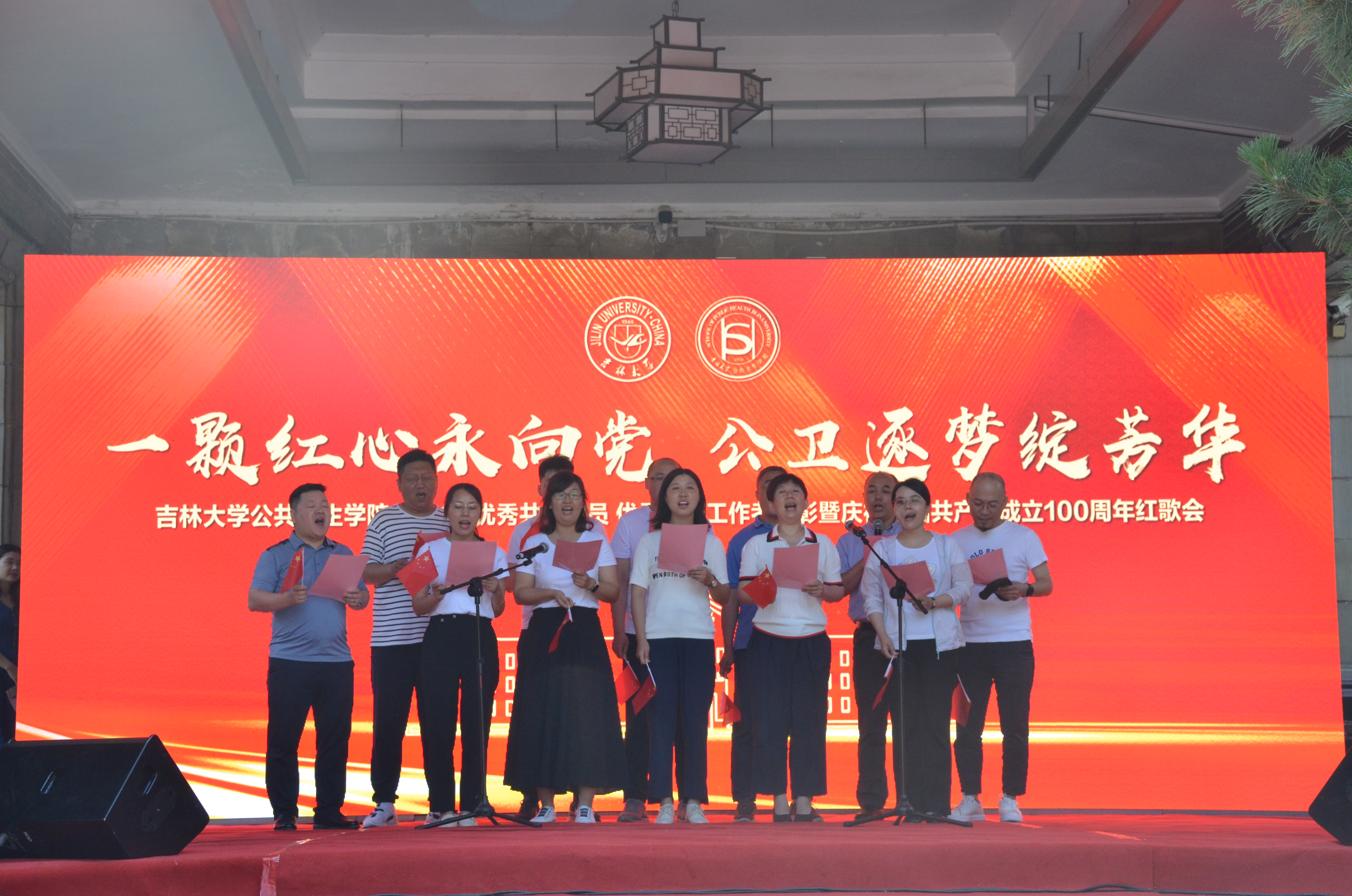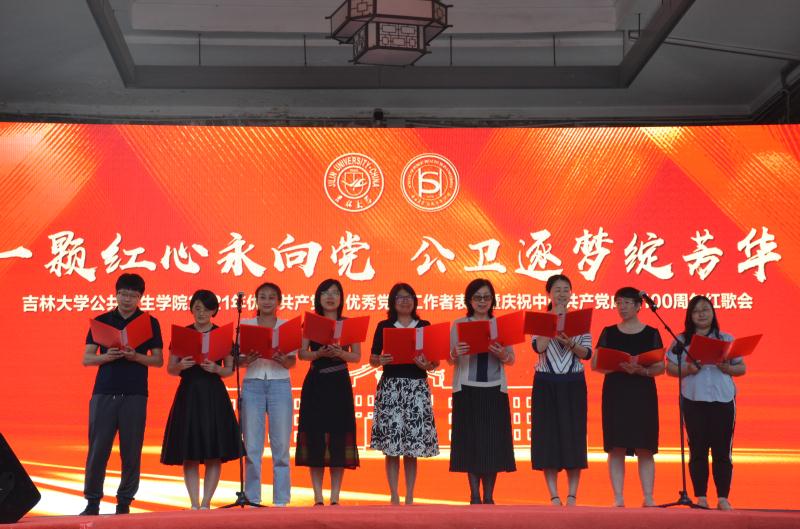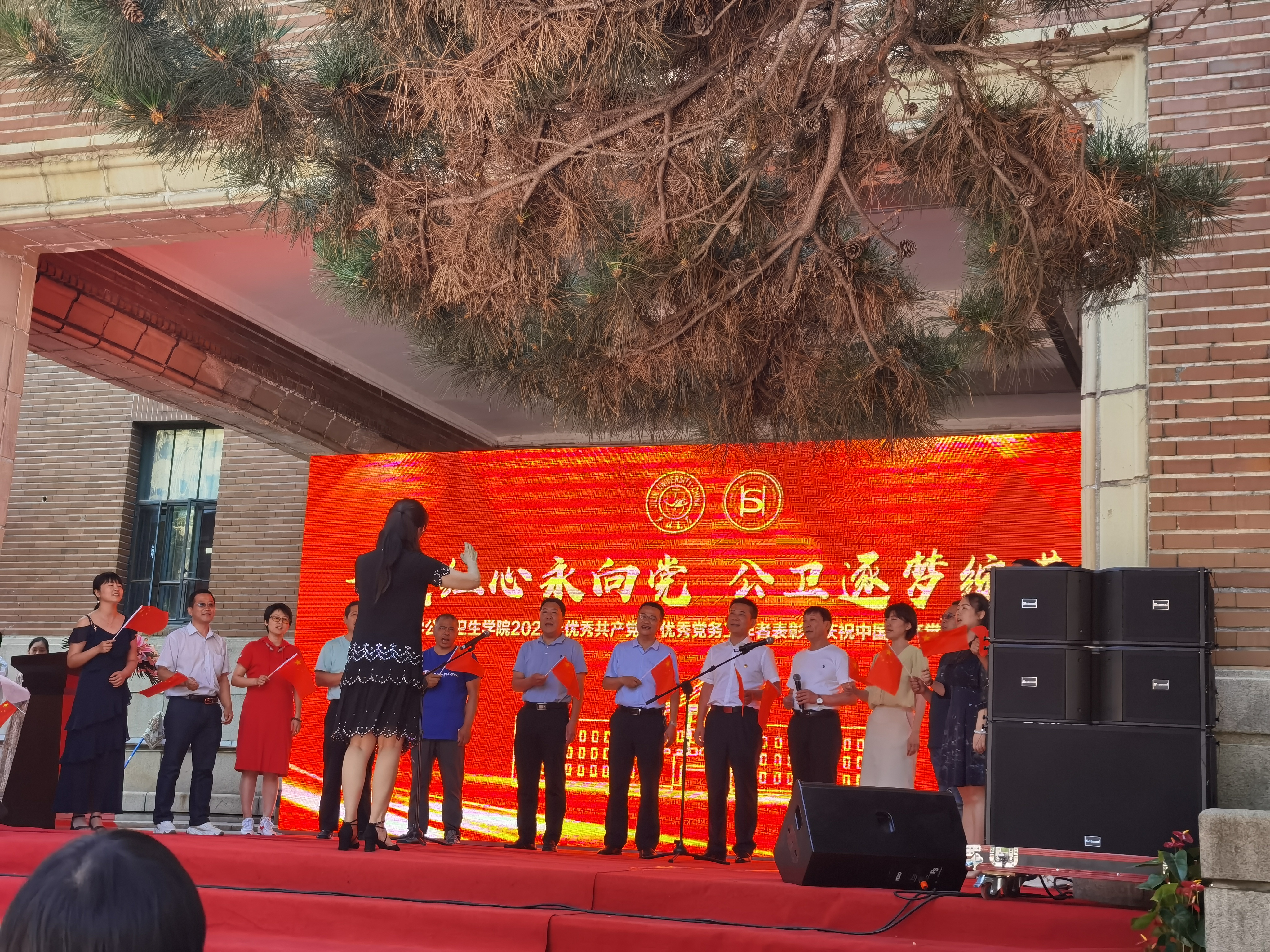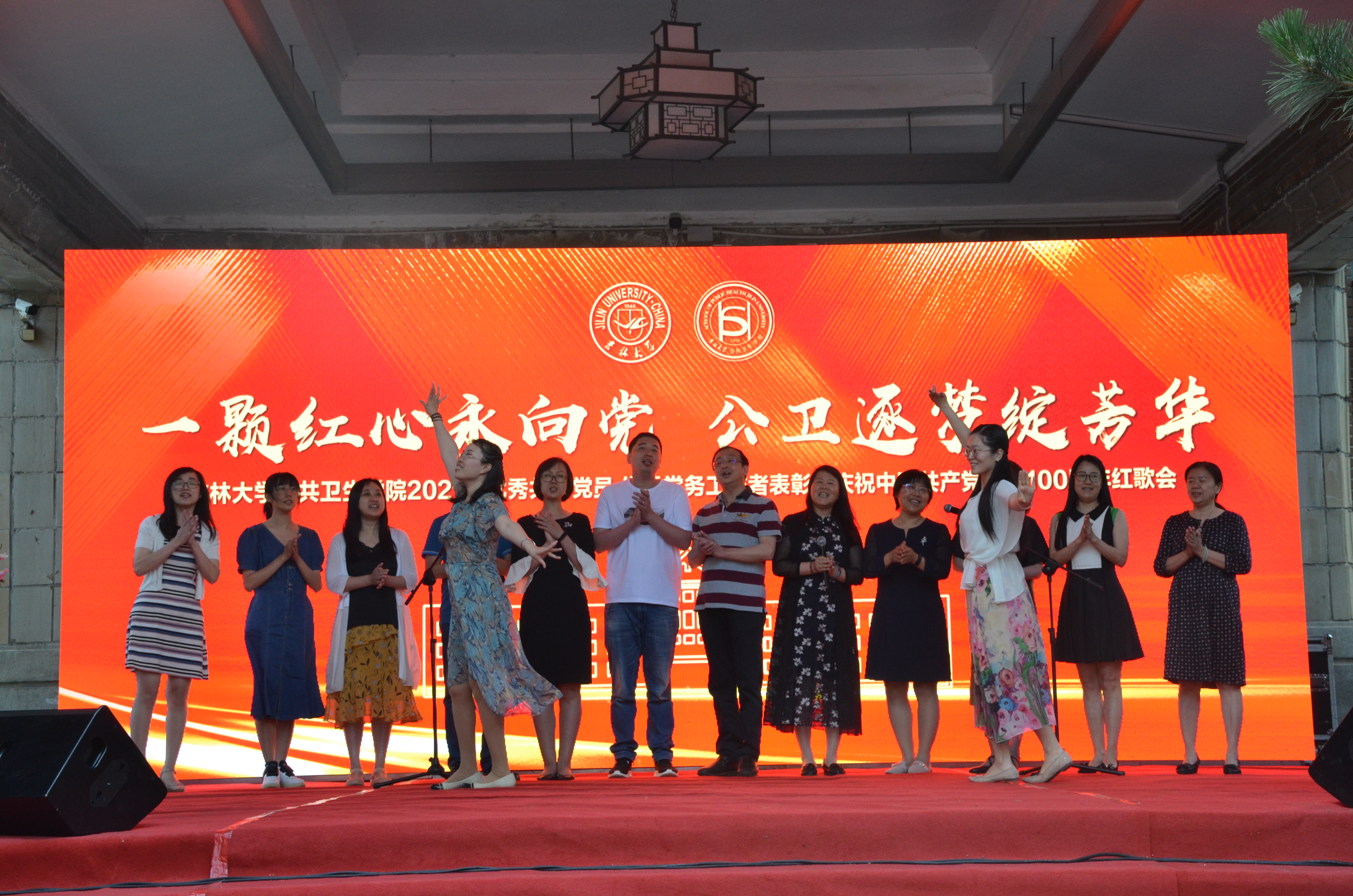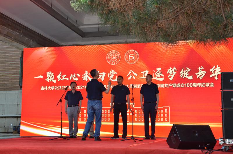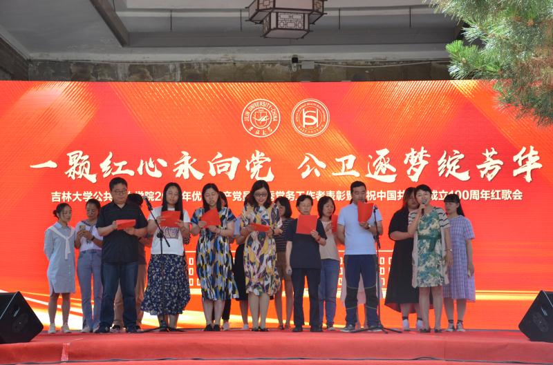 办公楼前联合举办了“一颗红心永向党,公卫逐梦绽芳华”2021年优秀共产党员、优秀党务工作者表彰暨庆祝中国共产党建党100周年红歌会。包你发