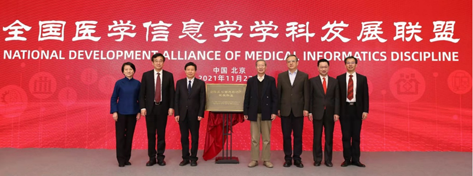 医学信息研究所发起并成立了“全国医学信息学学科发展联盟”,与会领导和三位院士共同为全国医学信息学学科发展联盟揭牌。“全国医学信息学学科发展联盟”旨在从职业发展和行业管理两方面提升学科发展水平,实现学界和业界融合发展,促进医学卫生健康行业高质量信息化。首批联盟成员为全国高校、科研院所及医疗卫生机构等22家医学信息学学科建设相关单位。包你发