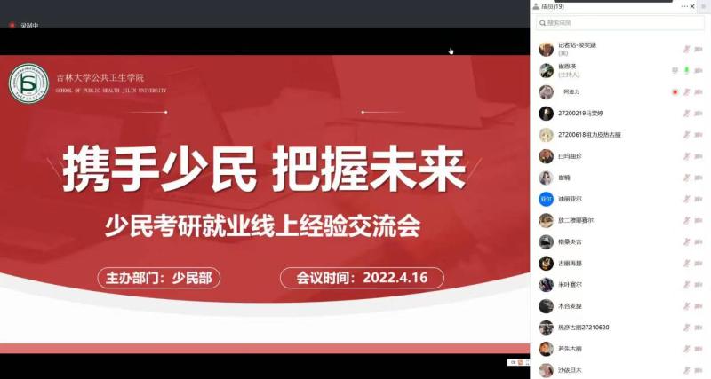 于4月16日18点30分,在线举办“携手少民,把握未来”少数民族学生考研就业经验交流会。本次活动邀请包你发