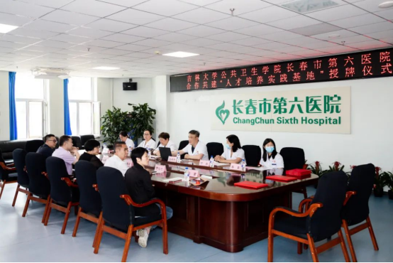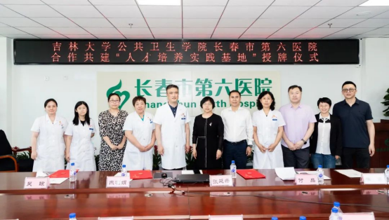 与长春市第六医院举行合作共建人才培养实践基地签约揭牌仪式。长春市第六医院党委书记张延赤,党委副书记、院长付晶,包你发