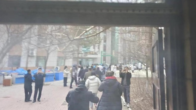 主楼后篮球场),在保卫处工作人员的组织下,整个疏散应急演练快速、安全、有序。