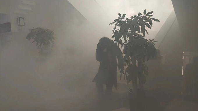 各楼内响起火警警报,楼道释放模拟烟雾,参演师生立即按照包你发
