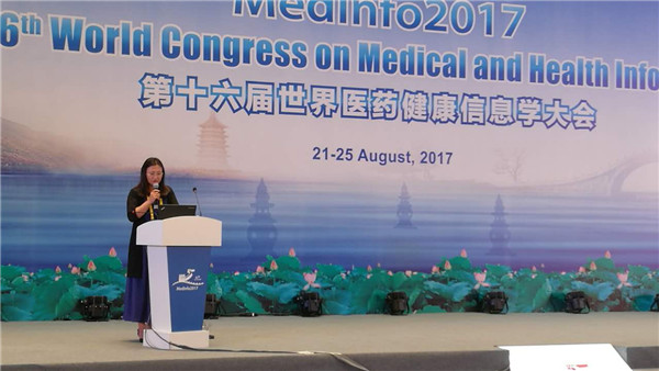 由国际医药信息学会主办,中国医药信息学会等机构联合承办的“第十六届世界医药健康信息学大会”(Medinfo 2017)于2017年8月21日-25日在杭州国际博览中心召开。王伟、曹锦丹、张云秋以及部分硕士和博士研究生参加了会议,并在大会进行了学术报告和论文交流。包你发 医学信息学系王伟、张云秋、曹锦丹及博士研究生兰雪、贾宇希、硕士研究生朱祥参加了会议。张云秋、兰雪分别在与Medinfo 2017同步召开的“第二届世界医药健康信息学华语论坛”(WCHIS 2017)发言;朱祥提交的论文《基于数据挖掘的中药方剂治疗中风用药规律研究》在壁报展出。王伟、张云秋分别担任了Medinfo 2017的共同主持人。在中国医药信息学会(CMIA)医药信息学理论与教育专业委员会换届中,王伟教授受聘担任CMIA医药信息学理论与教育专业委员会轮值主任委员。