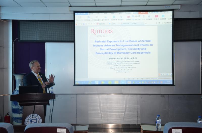 分别作了题目为“Sex Education: Policy, Practice,and Implications for Adolecent Health”和“Perinatal Exposure to Low-Doses Zeranol Induces Adverse Transgenerational Effects on Sexual Development, Fecundity and Susceptibility to Mammary Carcinogenesis”的学术讲座。Kantor教授的报告集中阐述了开展性教育对于青少年健康的重要性以及世界各国实施性教育的现状。Zarbl教授的报告集中阐述了有关Zeranol的最新研究、Zeranol与DES的对比以及围产期接触低剂量的Zeranol对产妇及新生儿造成的影响。两位教授演讲内容丰富、幽默风趣,与现场师生的频繁互动。部分师生就自己感兴趣的问题与二位教授进行了热烈的探讨和交流。包你发