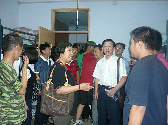 院领导们逐一走访了新同学寝室,与同学进行了亲切的交谈。交谈过程中,耐心询问同学们遇到的实际生活困难,特别是心理适应性方面的一些感受,告诉大家遇到问题要及时和老师们取得联系、寻求帮助,全体领导和老师一定会尽快、全力帮助大家解决,使同学们尽快适应新的大学生活。走访过程中,领导们还认真查看新同学宿舍的卫生、安全等各方面情况,提醒同学们注意宿舍卫生及秋季疫病的防治,同时注意防火防盗,努力营造一个温馨、舒适、安定的宿舍环境。