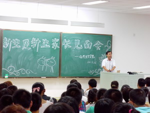 在南区李四光楼306室召开2011级新生及新生家长见面会。于书记、吴主任、关老师、田老师、苏老师、曲老师均出席此次见面会。于书记对包你发