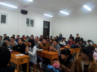 主持人王蕊宣布本次活动正式开始。怀着骄傲和自豪的心情,载着对中华大地、天南地北的共同祝愿,张志伟学长为大家宣读了十八大精神,也为大家今后的学习指明了方向,一起为祖国的明天努力。