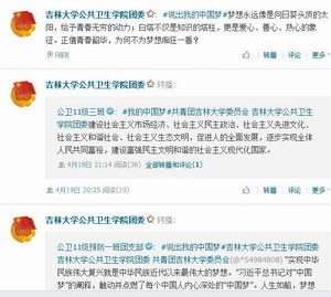 和各班团支部的官方微博进行转发,更在微博上和同学们相互交流自己的收获、发表自己对五四运动的感悟——正是因为有五四运动的激励,中国一代又一代的青年才矢志不懈的为自己的梦想而奋斗着。其中,发布微博总数1164条,其中被互动评论273条、转载1822次。