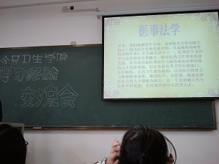 于中心校区李四光教学楼314教室举办了医事法学专业学习经验交流会。12级负责人和医法优秀学生代表及13级全体医法专业同学参加了本次交流会。