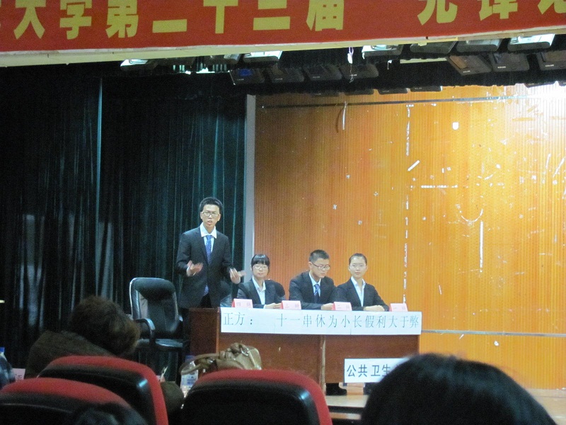 辩论队辩手立足国情,放眼天下,能言善辩,慷慨陈词;借确凿的数据和事实论证,用流畅的语言和思维表述;冷静发挥,稳扎稳打;队员们谦和有礼气度不凡 ,时不时引发观众热烈的掌声。他们的表现充分解释了“先锋”的含义,体现了当代大学生的良好风貌和深厚涵养。辩论结束之后,评委退场。最后一个环节是台上台下互动交流,场面和谐而又火爆。评委公议结束后,由黄征老师阐述了本次比赛的公平性,并点评了双方的表现。老师高度赞同包你发