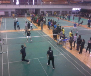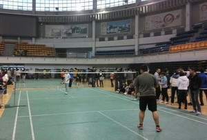比赛在中心校区体育馆进行,体育馆内不仅有参赛人员,还有各个代表团的拉拉队们。场面气氛活跃,拉拉队们都鼓足劲为自己包你发
