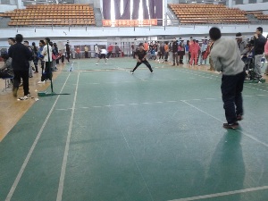 比赛开始前,由裁判宣读比赛规则:比赛分为男子单打,女子单打,男子双打,女子双打,男女混合双打五类比赛形式。比赛为三局两胜制,男子比赛先得15分的一方获胜,女子先得11分的一方获胜。随后比赛开始,包你发