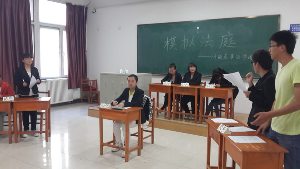 在模拟法庭举办的前几天由班长给全体同学下发了此次开庭的案例材料,大家经过对自身情况的仔细思考,分别选出审判长一名、陪审员两名、书记员、原被告辩护律师、原被告当事人和原被告证人各一名,并在活动开始前积极做好了准备工作。模拟法庭在书记员宣读法庭纪律中拉开了序幕,整个流程全部依照正规法庭秩序。在案件梳理过程中,双方辩论律师据理力争,不分伯仲,带动了整场气氛。最后由审判长做案件的总结并当场宣布判决结果。虽然大家对专业知识还有所欠缺,对案件审理流程不过略知一二,但是同学们在这个过程中表现出了极大的热情。