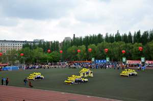 文艺部组织的142人的大型舞蹈表演于5月16日上午10点在中心校区体育场顺利拉开了帷幕。