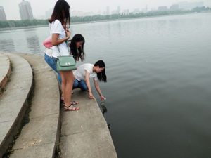 伊通河作为长春饮水的主要供给水源,污染问题不容忽视。沿河两岸分布着居民区、广场和公园,每日的垃圾亟待清理。针对此现状,实践团的志愿者们自发组成小队,清理沿岸垃圾。早上集合后,志愿者们带着垃圾袋、手套和其他工具,先从绿化较好、周边水量充沛的伊通河大桥出发,逆流而上清理垃圾。尽管垃圾分布散、面积广,工作辛苦,实践团的同学们还是积极认真的沿河清理垃圾,扶好警示牌,清扫人行道。在清理垃圾的同时志愿者们还对河岸的扶栏等防护措施进行了检查,为市民们打造一个美丽安全的伊通河。同日下午,一行人来到文化广场,进行母亲河水的义卖,志愿者们将从伊通河收集来的河水装在漂流瓶里,这样新鲜有趣的活动形式吸引了众多市民驻足观看,志愿者们以此契机将“保护环境,保护母亲河”的环保理念向市民大众进行宣传。
