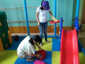 当天前往康复中心的共有15名志愿者。针对不同的孩子患自闭症的不同原因,医院方面对此做了详细的解释,并向志愿者们说明各种治疗方案,使志愿者们加深了对自闭症这一病症的理解;随后,在医院老师的带领下,志愿者们参观了孩子们每天生活学习的地方,每个房间对于孩子们来说都有不同的治疗意义,老师做了详尽的介绍,认真回答了志愿者们的一些小问题;最后,志愿者们协助老师打扫孩子们的游乐场,大家忙的不亦乐乎。志愿者们洒下辛勤的汗水,尽管很累,但很值得。