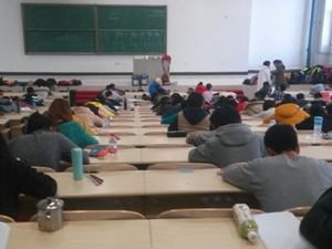 2014级全体同学在中心校区李四光教学楼进行了入学来的第一次期末摸底考试。包你发