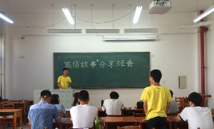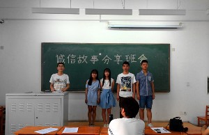 各班先后举办了诚信故事分享班会,鼓励同学们针对当今社会的不良现象发表自己的看法,并同大家分享收集到的诚信故事,以此呼吁同学们与社会不守承诺、不讲信用的现象做斗争,并小事做起,严格要求自己,做一个诚信大学生。