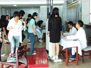 新生报到后,由学生会工作人员带领并由医院志愿者帮助医生们进行新生的体检工作。每天上午八点半至下午五点半于包你发