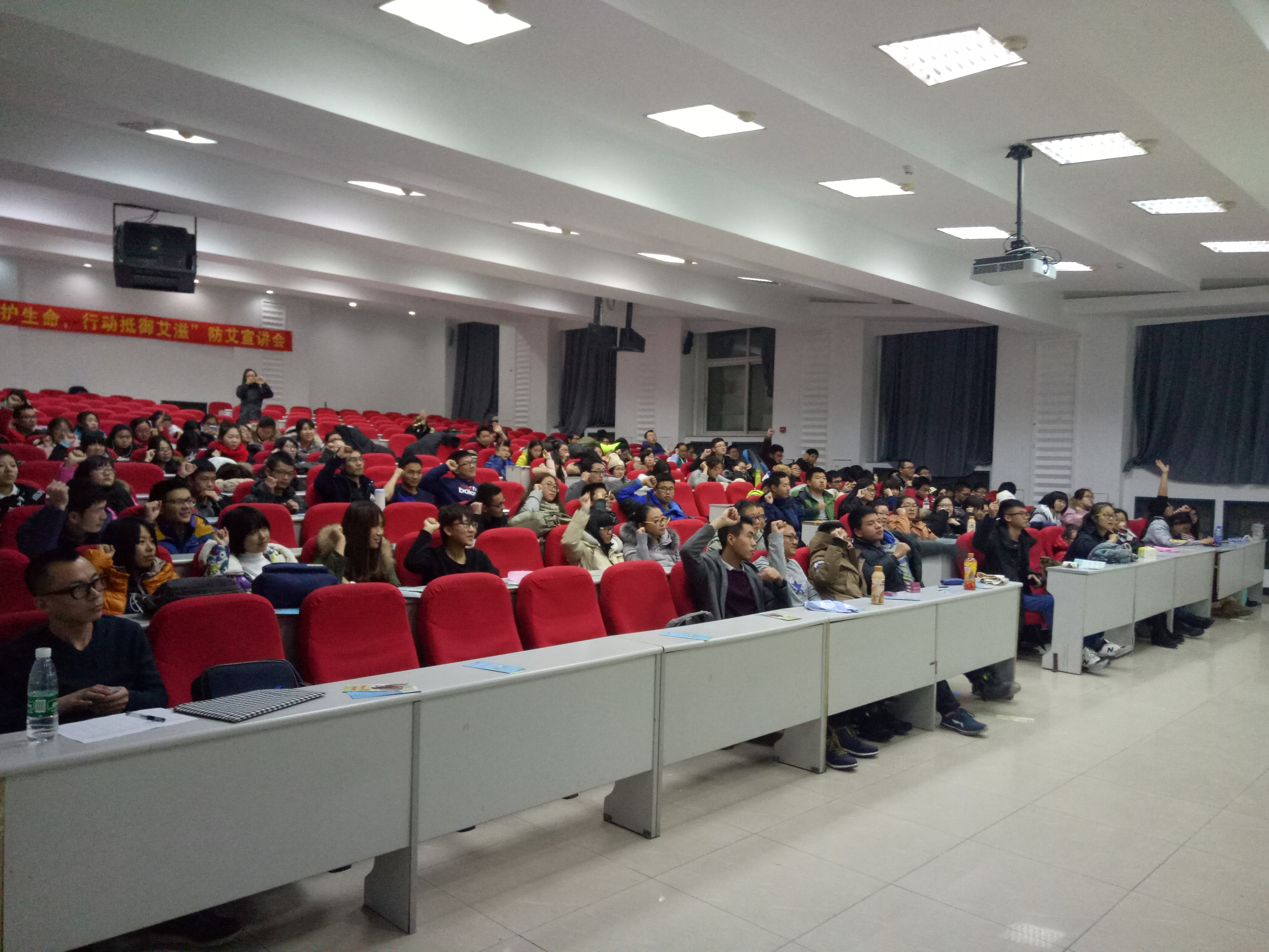 讲座中,刘娣首先阐述了对人类生存和发展构成严重威胁的世界性问题——艾滋病究竟是什么。随后,她又以具体的数字、真实的案例以及触目惊心的图片展示了近年来艾滋病发病率逐年升高、疫情从高危人群向一般人群快速传播等趋势。她表示,其中,大学生感染者逐年升高,形势严峻,不得不引起在校学生的高度重视。随后,刘娣向学生们普及了艾滋病传染源、传播途径、防治措施及国家对艾滋病“四免一关怀”政策等基础知识。讲座在与会同学中引起了强烈反响,现场互动效果良好,同学们都积极回答刘娣提出的问题,并因此也获得了小奖品。在会后的随机采访中,同学们纷纷表示收获颇多。