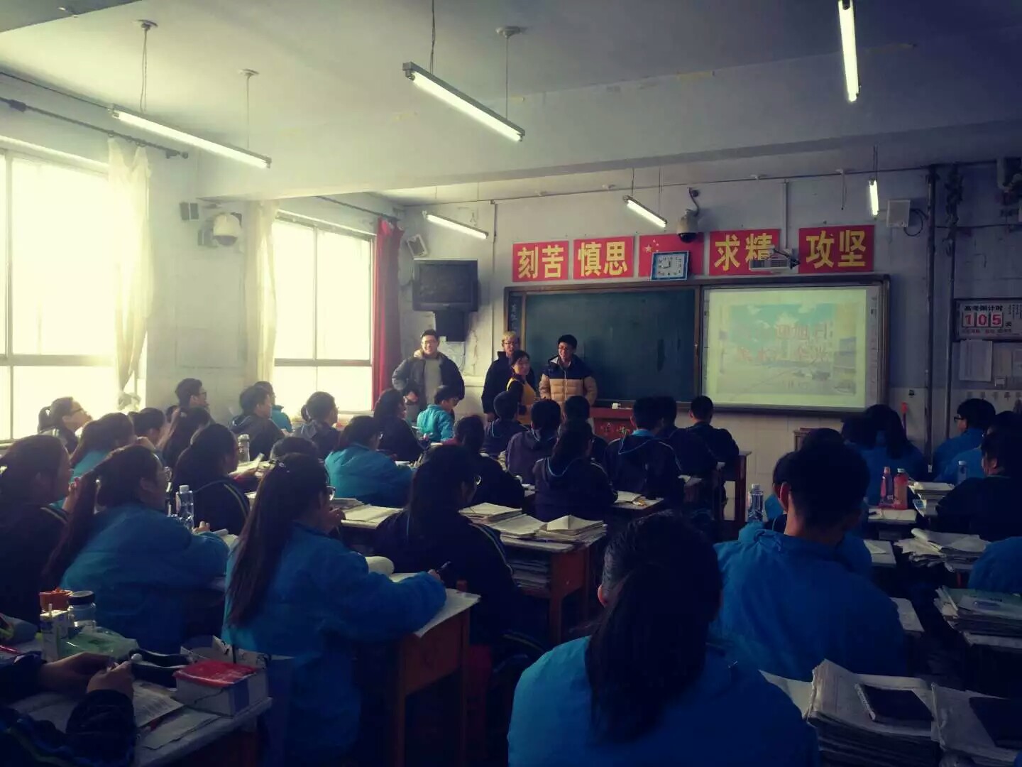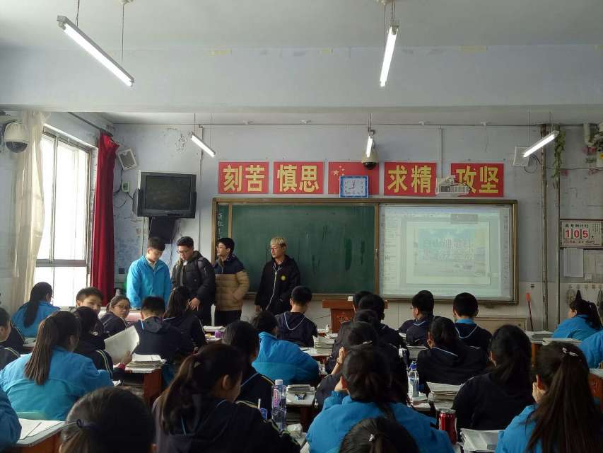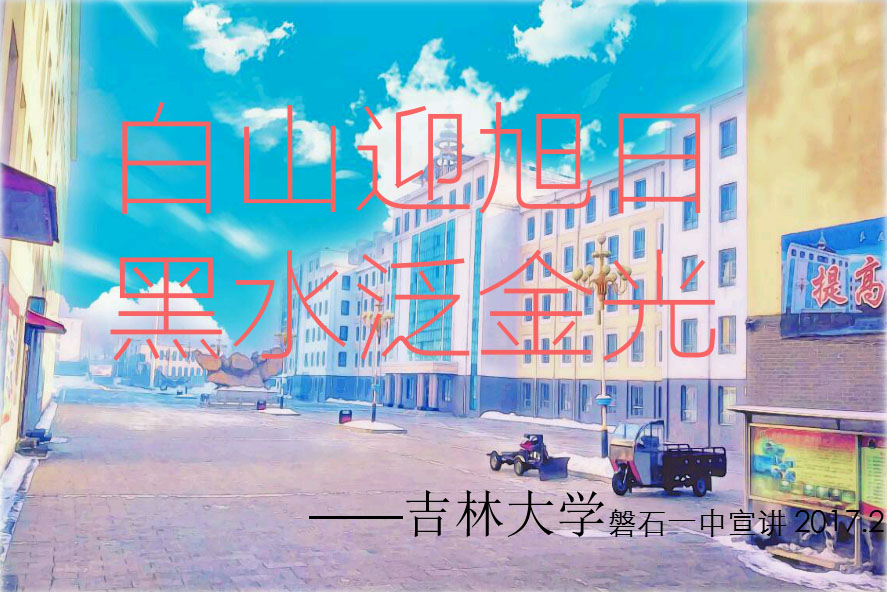 等同学回到他们的母校——磐石第一中学——进行宣讲活动,宣传包你发