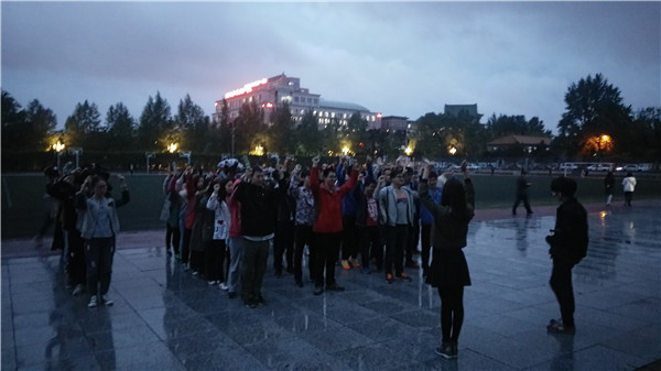 训练伊始,在确定了观众队伍的总人数之后,工作人员按照身高将观众座位进行了安排。队形排好,工作人员就训练的具体内容向在场的同学们做了简单的说明,并详细交待了运动会当天观众的活动流程安排以及需要注意的事项。随后,同学们在工作人员的安排下开始正式训练。