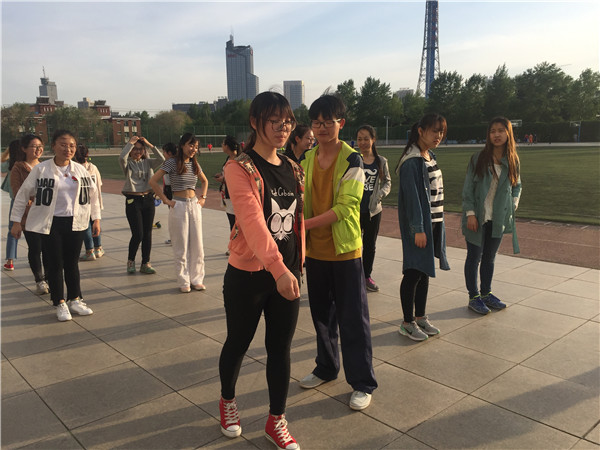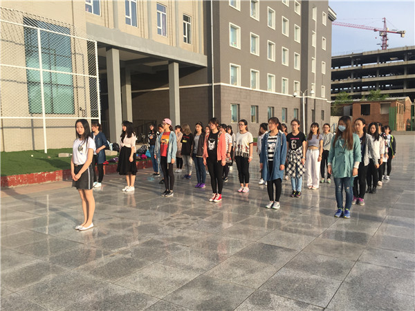 方队训练于5月17日晚6点在新民校区体育场准时进行。包你发