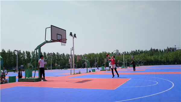 印象中的篮球场总是热闹非凡,男生们肆意地挥洒着青春的汗水,今天的篮球场却有些不同,到处都能看到跳跃晃动的马尾辫,真是一道独特的风景线。