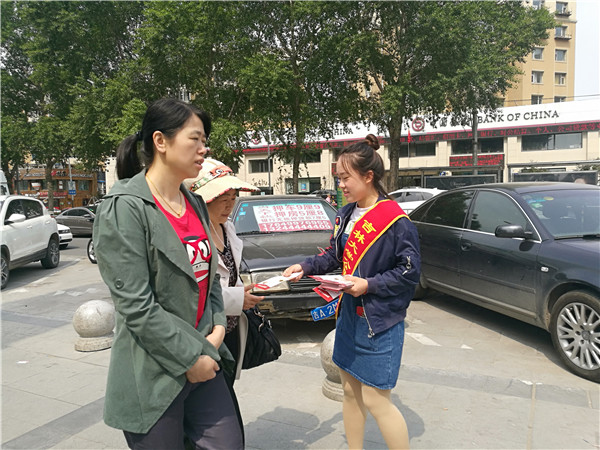 5月28日,天气晴朗,是室外宣传的好日子。正值周末,上午九点半,红旗街万达广场附近已经车水马龙。同学们迅速投入到工作中,在献血屋周围积极开展无偿献血宣传活动。斜挂在身上的红色条幅写着“包你发
