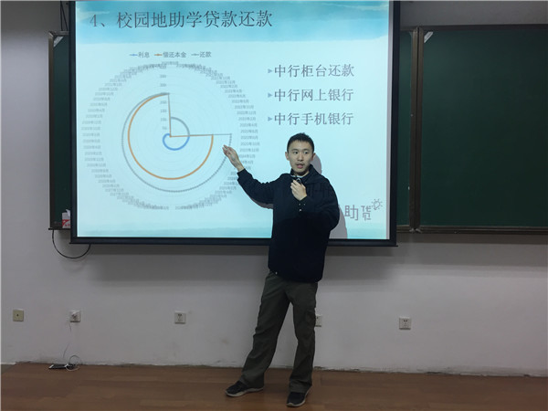 官方微信公众号“公小卫”的几篇贷款推送切入主题,向大家介绍了助学贷款的基本特点、其相比于其他类型贷款的优越性以及生源地助学贷款的放款,续贷和最终还款流程。其中,他以助学贷款违约率曾超过50%的西安交通大学为反面典型,强调了及时还贷的重要性。这不仅关系到个人的诚信记录,更是学弟学妹顺利获得助学贷款的良好保障。随后,主讲人又为同学们介绍了包括借记卡贷记卡、常见理财平台,贷款的单利与复利、银行征信系统在内的一些金融知识小常识。在场的同学们无不被主讲人风趣幽默的说话风格所吸引,一场看似内容枯燥的报告会,气氛却出乎意料地轻松欢快,主讲人寓教于乐的讲授方式明显收获了良好的效果。