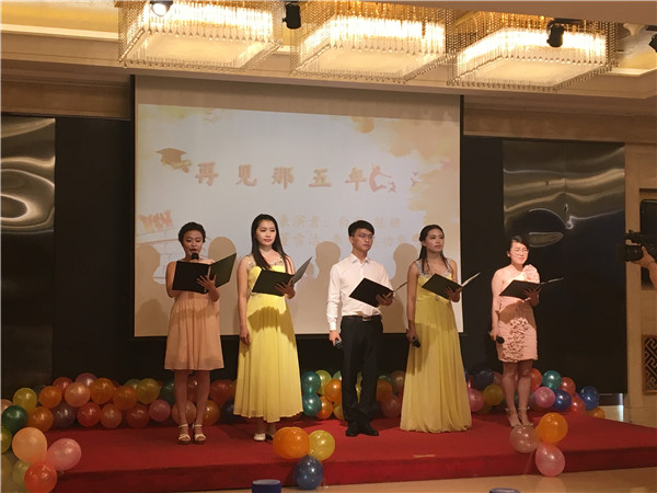 、老师、同学的难舍情谊;诗朗诵作品《再见,那五年》的精彩演绎,带领毕业生们重温了校园生活的点点滴滴;2014级王红、赵汗青,2015级杜雨师、李清心等同学,通过风格迥异的流行歌曲,唱出了毕业生们对青春岁月的美好眷恋和对未来生活的深情向往;研究生马荣爽、郑彤等同学表演的舞蹈《成人礼》,以性感、活泼的舞步彰显出包你发