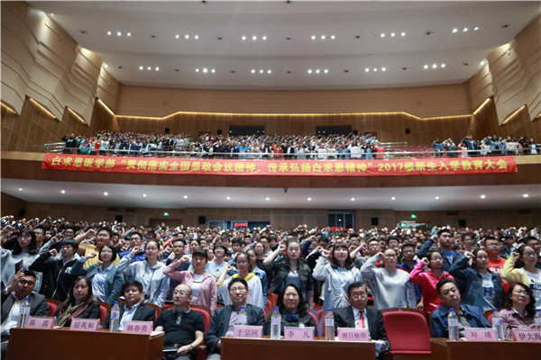 为贯彻落实全国思政会议精神,传承弘扬白求恩精神,8月29日上午9点,白求恩医学部2017级新生入学教育大会在前卫南区鼎新大讲堂隆重举行。白求恩医学部部长李凡教授,白求恩医科大学1959级校友、现卫生部医院管理研究所名誉所长于宗河教授,《NEJM医学前沿》(新英格兰医学杂志中文版)高级编辑照日格图教授出席了本次教育大会。