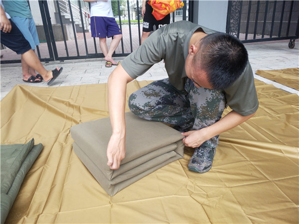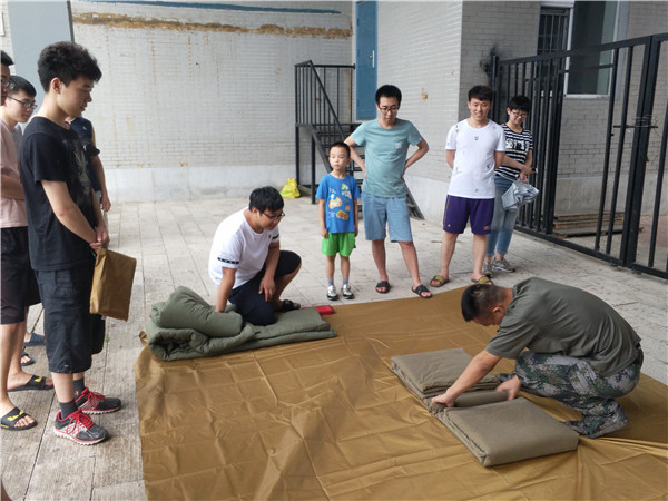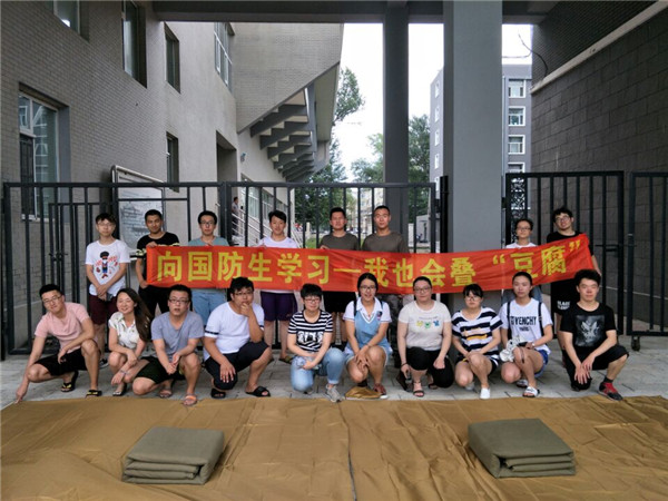 在新民校区操场组织、开展了“向国防生看齐——我也会叠豆腐”活动。