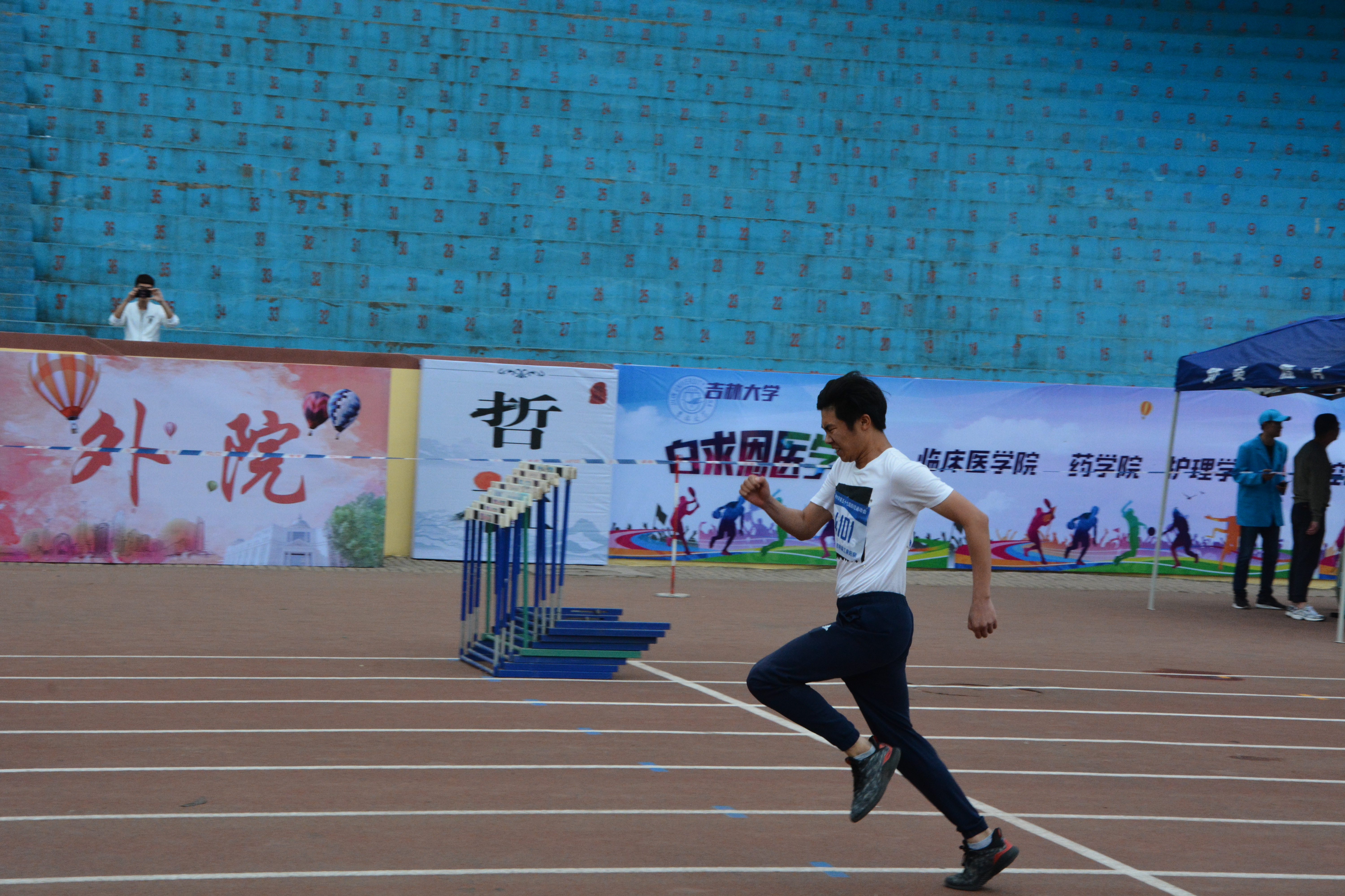 运动健儿李广斌同学发挥稳定,取得了令人满意的成绩。赛场上“八支彩色的箭”竞相追逐地冲向终点;加油声和呐喊声响彻整个运动场。