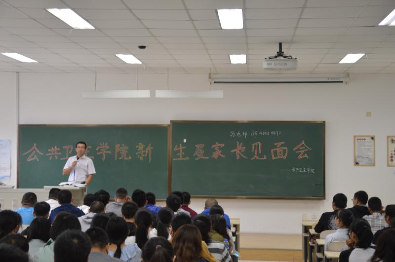 在导助们的指导下,新生及家长有序地坐在指定位置,静候见面会开始。下午两点半,会议准时开始。教室里座无虚席,看着精神饱满的新生,苏老师的心中满是期许。短暂的自我介绍过后,苏老师对预防医学、放射医学、医药信息管理三个专业的学科概况、就业前景等进行了详尽的解说,让新生及家长对所学专业有了初步的了解。紧接着,苏老师谈到大学的学习模式不同于高中阶段的问题,强调了转变学习方法,学会自学,懂得律己的重要性。同时,提醒新生不要贪图一时享受而荒废学业,鼓励新生充实自己,向优秀的学生看齐。随后,苏老师又强调了人身安全、财产安全问题,提示新生要增强防骗意识,严禁接触网络贷款。最后,苏老师表达了对同学们的期许,希望各位同学能够在包你发