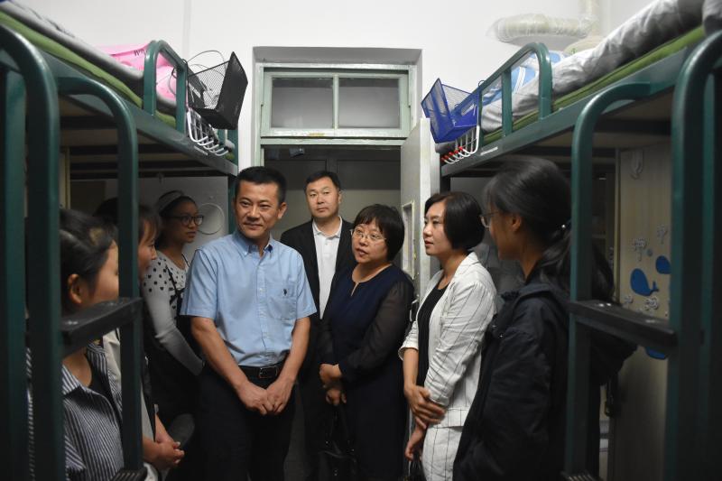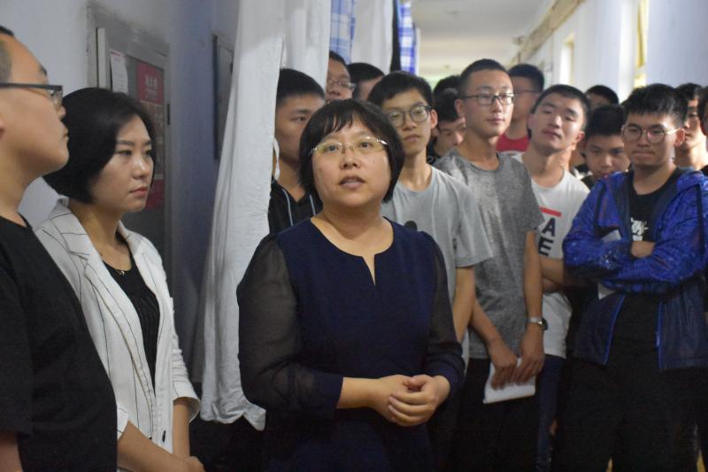 院长刘雅文,党委书记赵国利,党委副书记兼副院长刘丽,副院长于洗河、魏国志、寇长贵,全体辅导员共同来到2018级新生寝室进行走访慰问,为新生们带来了来自包你发