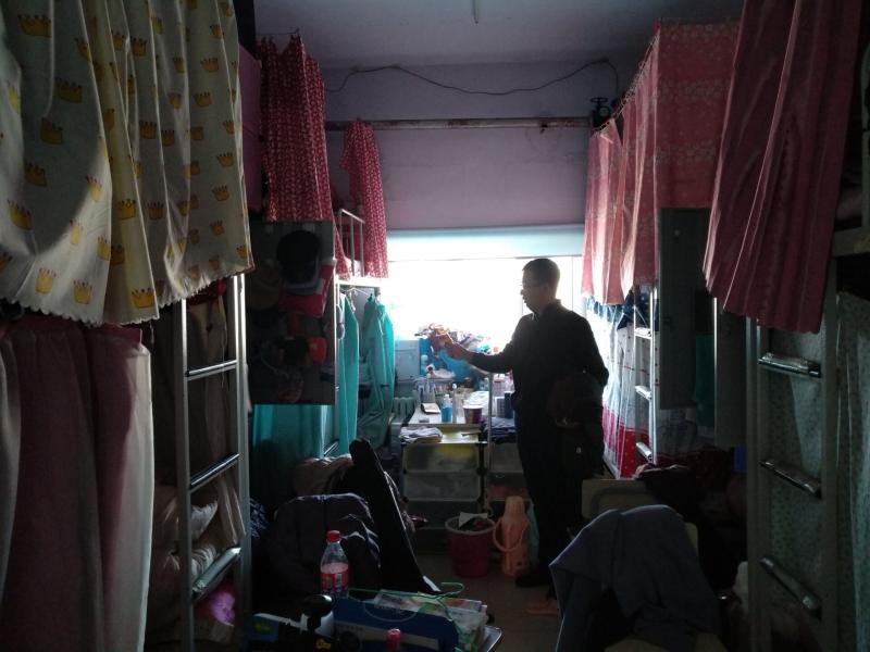 学生工作办公室主任兼2015级、2018级辅导员苏国范老师于12月12日,依次对新民校区第一、第三、第四、第九学生公寓的同学进行慰问并检查寝室内温度。